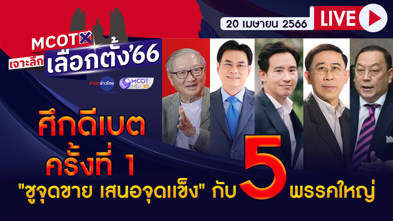 รายการพิเศษประชันวิสัยทัศน์ครั้งที่ 1 #MCOTเจาะลึกเลือกตั้ง 66 “ชูจุดขาย เสนอจุดแข็ง” กับ 5 พรรคใหญ่ | 20 เม.ย.66