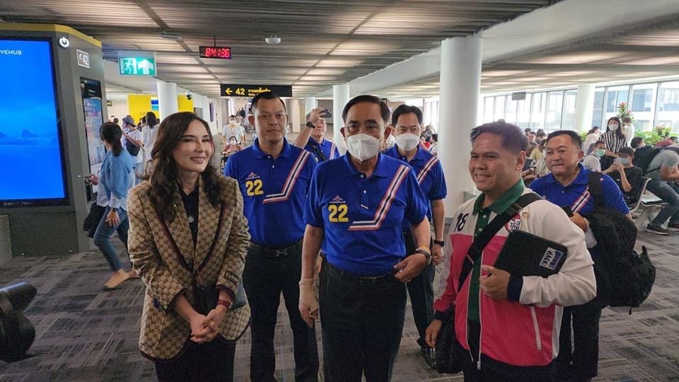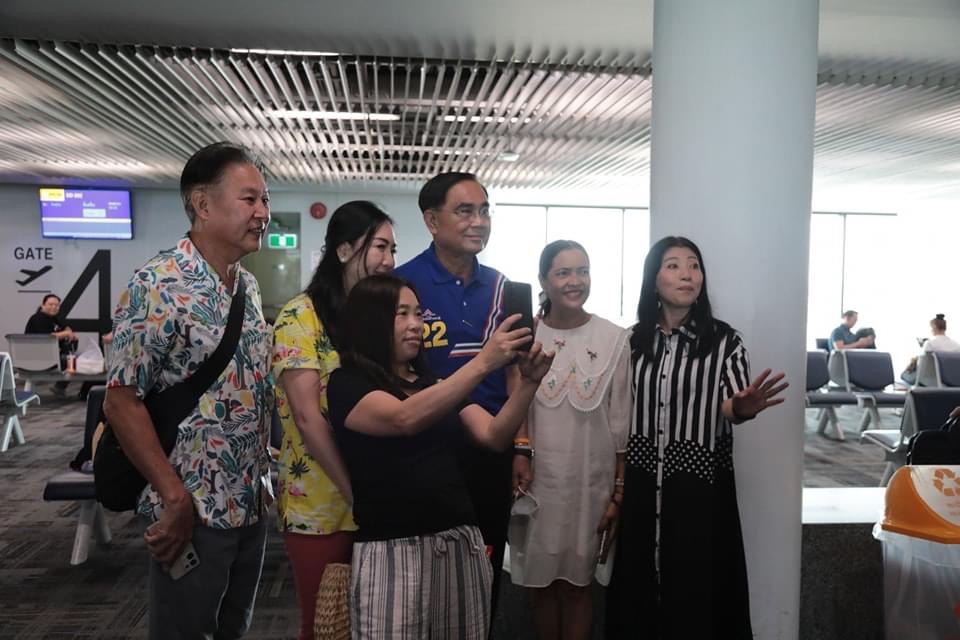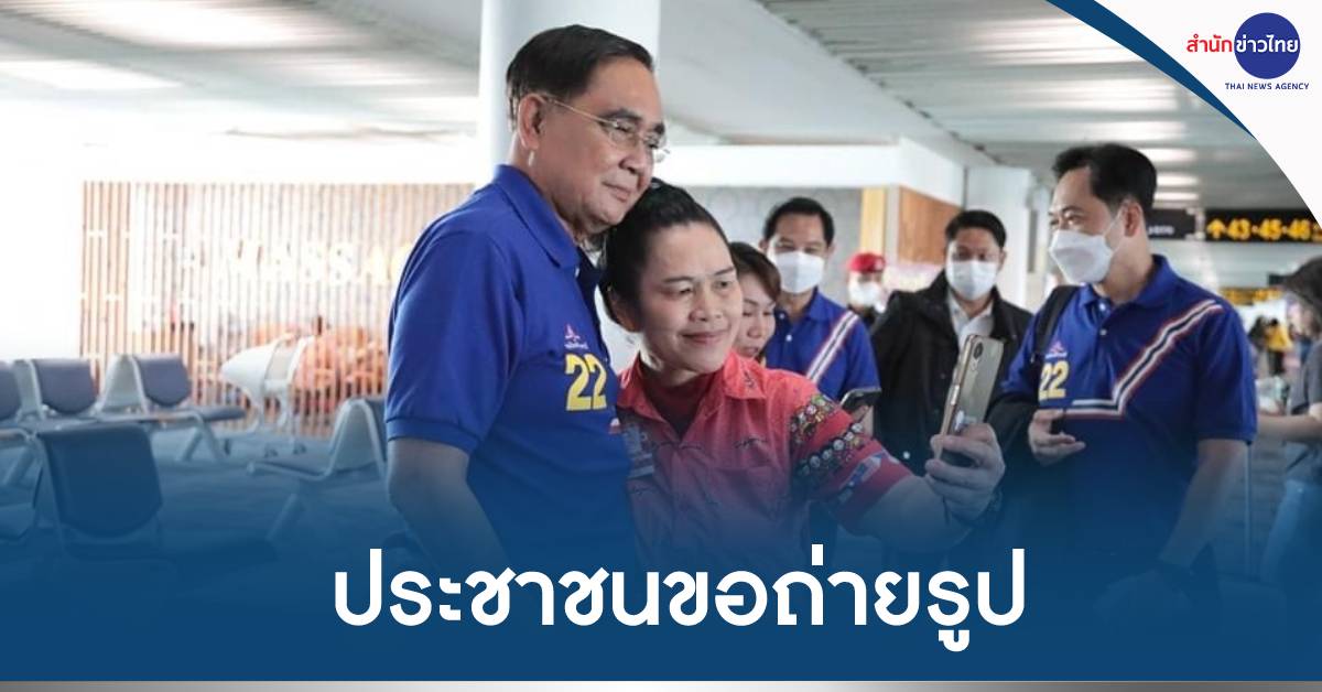 ดอนเมือง 23 เม.ย.-พล.อ.ประยุทธ์ พร้อมคณะพรรครวมไทยสร้างชาติ ลงพื้นที่หาเสียง จ.พิษณุโลก ประชาชนแห่ขอถ่ายรูปขณะรอขึ้นเครื่องที่สนามบินดอนเมือง