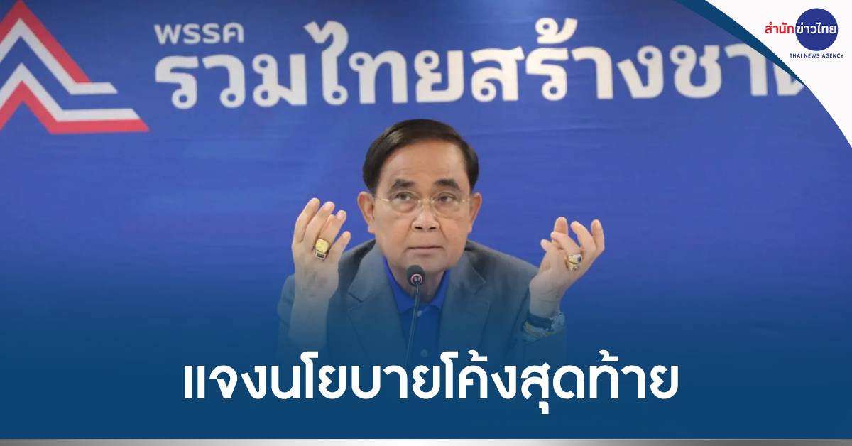 รทสช. 26 เม.ย.-“ประยุทธ์”นำทีมแกนนำรวมไทยสร้างชาติ ชี้แจงนโยบายชุดใหญ่ โค้งสุดท้ายมั่นใจเป็นรัฐบาล หารายได้เข้าประเทศ 4 ล้านล้านบาท ย้ำบุคลากรพรรค มีคุณภาพ คิดนโยบายไม่เกทับใคร ครอบคลุมทั้งด้านเศรษฐกิจ สังคม
