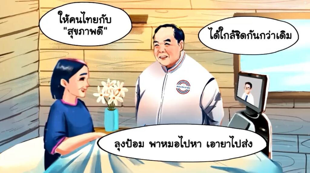 เพจของพรรคพลังประชารัฐ (พปชร.) มีการเผยแพร่คลิปที่มีเนื้อหาเกี่ยวกับการพัฒนาระบบสาธารณสุขของประเทศไทย ด้วยนโยบาย “ลุงป้อมพาหมอไปหา เอายาไปส่ง” มีเนื้อหาระบุว่า “จะหาหมอทั้งทีต้องเดินทาง ต้องรอคิว เข้าถึงการรักษายากลำบาก แต่วันนี้จะไม่เหมือนเดิมอีกต่อไป เพราะพรรคพลังประชารัฐจะนำระบบ Telelmed หรือการแพทย์ทางไกลมาใช้ โดยจะทำให้ไม่ว่าประชาชนอยู่ที่ไหน สามารถพบแพทย์ได้ ซึ่งนโยบายนี้ คือสิ่งที่ พล.อ.ประวิตร วงษ์สุวรรณ รองนายกรัฐมนตรี และหัวหน้าพรรคพลังประชารัฐ จะทำให้เกิดขึ้นทันทีที่เข้ามาเป็นรัฐบาลบริหารประเทศภายหลังการเลือกตั้ง โดยคนไทยทุกคนจะต้องมีสุขภาพที่ดี ด้วยเทคโนโลยีสาธารณสุขใหม่ ไม่ว่าอยู่ไกลแค่ไหน คนไทยก็ใกล้หมอกว่าที่เคย”