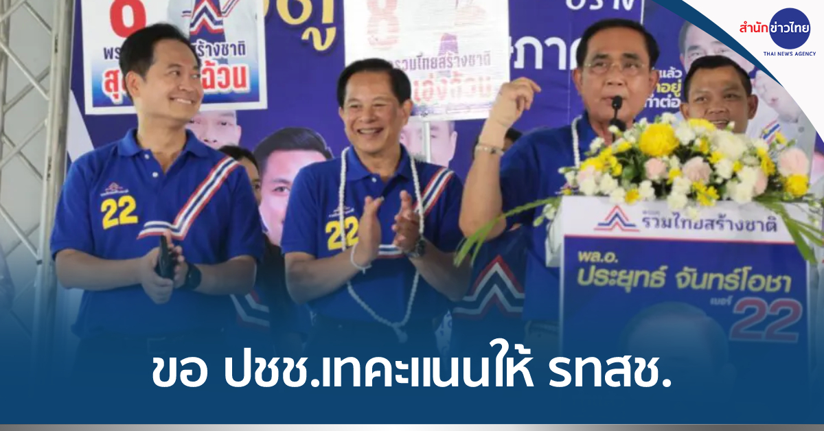 “ผมตัดสินใจที่จะทำ เพราะไม่ต้องการให้ประเทศหยุดชะงัก ที่ผ่านมากู้เงินมาเพื่อให้ประชาชน ไม่ได้เอามาใช้ด้วยตัวเอง ก่อนหน้านี้ก็กู้มาทุกปี ผมก็ต้องแก้ไขไป มีคนทำหนี้ทิ้งไว้ ต้องค่อย ๆ แก้ปัญหาประเทศชาติ ซึ่งไม่ได้ทำได้ภายในวันเดียว ผมทำงานมาแล้ว 8 ปี มีประสบการณ์ หลายอย่างก็ทำไม่ได้ เพราะมีหลายพรรคทำงานร่วมกัน แต่ถ้าเป็นรัฐบาลพรรคเดียว จะทำได้ง่ายกว่า จึงขอให้เลือกพรรครวมไทยสร้างชาติทั้งคน ทั้งเขต เพื่อให้พรรครวมไทยสร้างชาติได้เข้าไปทำงานต่อ z,อาจจะดูไม่หล่อ อาจจะพูดไม่เพราะ แต่ผมทำงาน อะไรที่มีอยู่แล้ว ผมจะทำต่อและทำให้ดีกว่าเดิม” พล.อ.ประยุทธ์ กล่าว