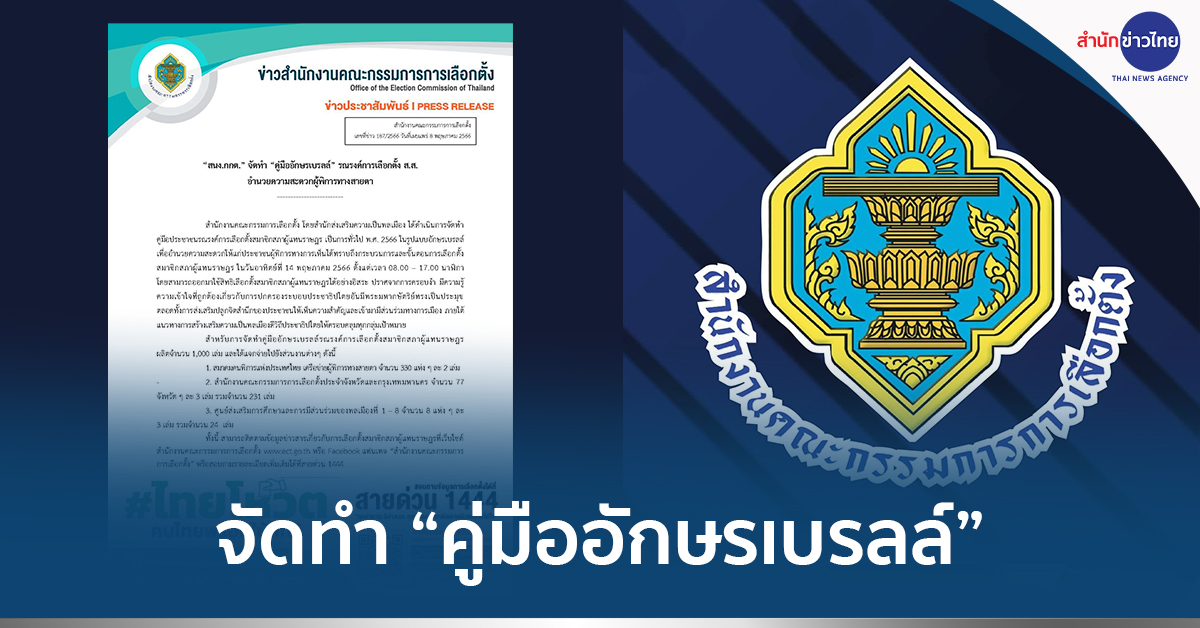 สำหรับการจัดทำคู่มืออักษรเบรลล์รณรงค์การเลือกตั้งส.ส. สำนักงานกกต.ได้ผลิตจำนวน 1,000 เล่ม และแจกจ่ายไปยังส่วนงานต่าง ๆ คือ สมาคมคนพิการแห่งประเทศไทย เครือข่ายผู้พิการทางสายตา จำนวน 330 แห่ง ๆ ละ 2 เล่ม สำนักงานคณะกรรมการการเลือกตั้งประจำจังหวัดและกรุงเทพมหานคร จำนวน 77 จังหวัด ๆ ละ 3 เล่ม รวมจำนวน 231 เล่ม ศูนย์ส่งเสริมการศึกษาและการมีส่วนร่วมของพลเมืองที่ 1 – 8 จำนวน 8 แห่ง ๆ ละ 3 เล่ม รวมจำนวน 24 เล่ม.-สำนักข่าวไทย
