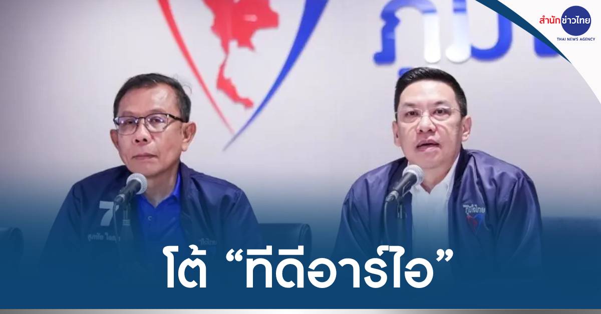 พรรคภูมิใจไทย 8 พ.ค.-พรรคภูมิใจไทย โต้ ‘ทีดีอาร์ไอ’ แก้ไขข้อสังเกต หลังระบุนโยบายพรรคใช้เงินมากสุดถึง 1.9 ล้านล้านบาท ทำเสียคะแนนนิยม ยันใช้งบฯรัฐเพียง 2.23 แสนล้านบาท ที่เหลือมาจาก เอกชนทั้งในและต่างประเทศ-แก้กฎหมาย แจง ‘โครงการแลนด์บริดจ์ชุมพร-ระนอง’ ใช้วิธี PPP ด้าน ‘พุทธิพงษ์’ ติงถูกบิดเบือน มั่นใจใช้เงินรัฐไม่ติด 1ใน 5 ของพรรคการเมือง