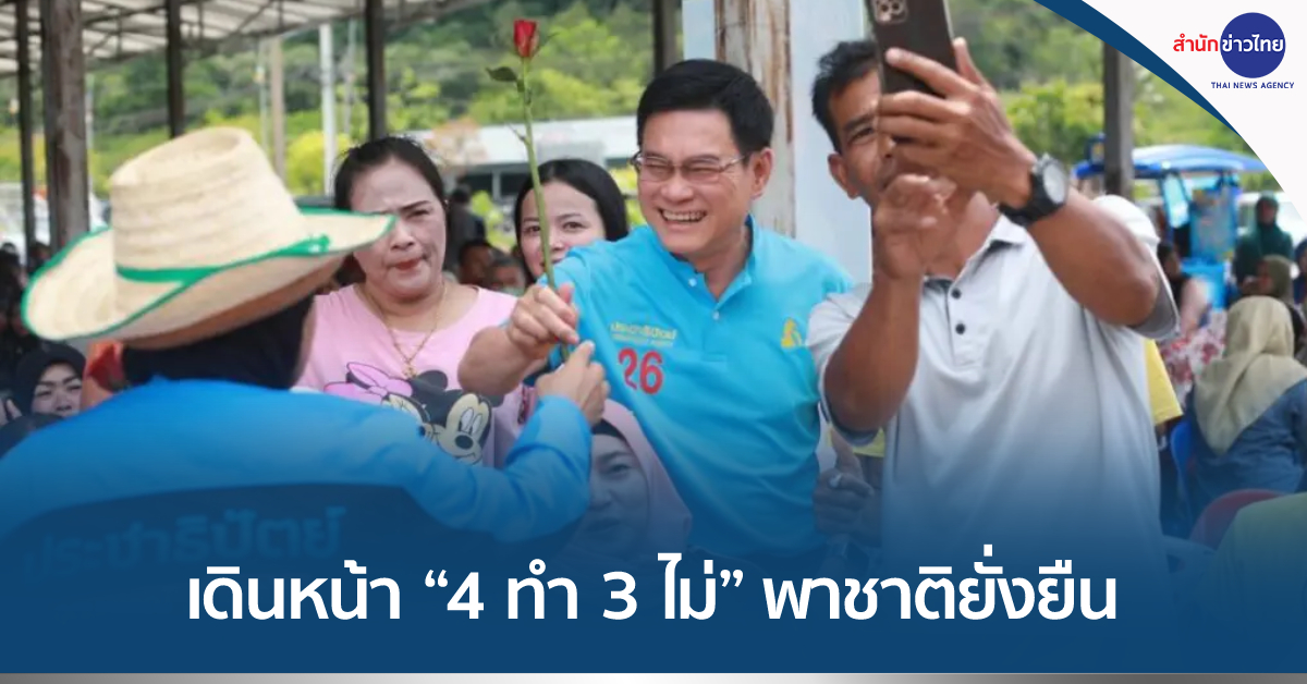 สตูล 8 พ.ค –“จุรินทร์” ประกาศบนเวทีปราศรัยสตูล ย้ำเดินหน้า “4 ทำ 3 ไม่” พาชาติยั่งยืน โค้งสุดท้ายเลือกตั้งมั่นใจได้ที่นั่งเพิ่ม