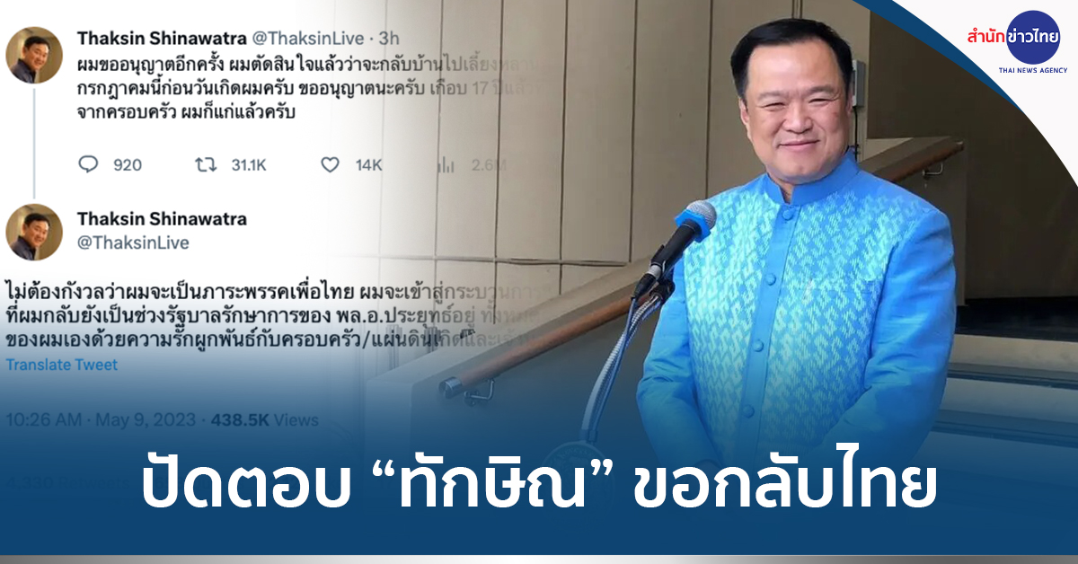 ทำเนียบฯ 9 พ.ค.- “อนุทิน” ไม่ขอแสดงความเห็น “ทักษิณ” ขอกลับบ้าน โยนเป็นเรื่องของเพื่อไทย
