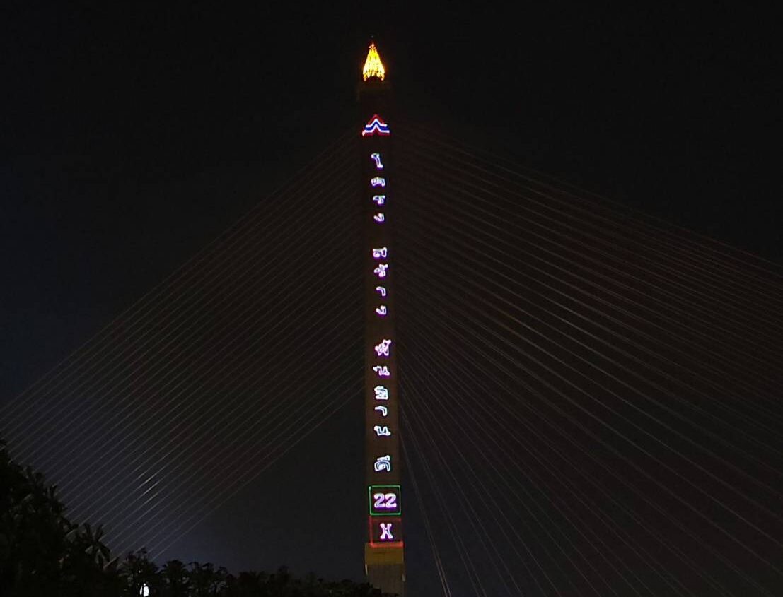 นายสมชัย ศรีสุทธิยากร ผู้สมัคร ส.ส.บัญชีรายชื่อ พรรคเสรีรวมไทย โพสต์ภาพและข้อความ การยิงเลเซอร์หาเสียงของพรรครวมไทยสร้างชาติ ว่าตรวจสอบแล้ว ป้ายดังกล่าว เป็นการยิงเลเซอร์จากพื้นที่สวนสาธารณะ สวนหลวงพระราม 8 โดยพรรคขออนุญาตใช้สถานที่หาเสียง แต่ไม่ได้ขออนุญาตการใช้เลเซอร์ยิงข้อความไปที่เสาสะพานพระราม 8 หน่วยงานเจ้าของสถานที่ คือ สำนักการโยธา กทม. ไม่ได้อนุญาตให้ยิงข้อความดังกล่าว