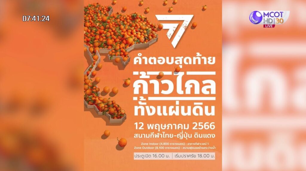 พรรคก้าวไกล ทำคลิปรวบรวมภาพบรรยากาศการปราศรัย ตามพื้นที่ต่าง ๆ ตามภาคต่าง ๆ เช่นกัน พร้อมเชิญชวนประชาชน “มาร่วมสร้างทะเลดาว ทะเลใจ ด้วยกันครั้งสุดท้ายของการเลือกตั้งครั้งนี้ โดยจะมีการจัดปราศรัยใหญ่ และยังมีการออกแคมเปญทำเป็นแผนที่ประเทศไทยที่มีผลส้ม พร้อมระบุว่า สิ้นสุดการรอคอย เวทีปราศรัยสุดท้ายก่อนเข้าคูหาคำตอบสุดท้าย “ก้าวไกลทั้งแผ่นดิน” สนามกีฬาไทย-ญี่ปุ่น ดินแดง (ทางเข้าประตู 3) ประตูเปิด 16.00 น. เริ่มปราศรัย 18.00 น.