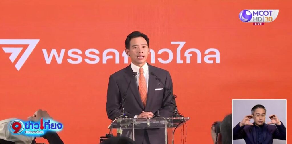 กทม. 15 พ.ค. – “พิธา ลิ้มเจริญรัตน์” หัวหน้าพรรคก้าวไกล แถลงพร้อมเป็นแกนนำในการจัดตั้งรัฐบาล นี่คือการน้อมรับฉันทามติจากพี่น้องประชาชน พลิกขั้ว เปลี่ยนข้างจากฝ่ายค้านเดิม ในการจัดตั้งรัฐบาล และพร้อมเป็นนายกรัฐมนตรีของคนไทยทุกคน พร้อมจะฟังความคิดเห็นที่แตกต่าง และความคิดเห็นแตกต่างจะทำให้ผมได้เป็นนายกรัฐมนตรีที่ดีขึ้นในอนาคต