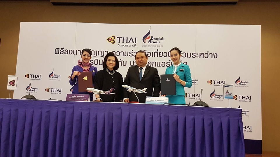 นางอุษณีย์ แสงสิงแก้ว รักษาการกรรมการผู้จัดการใหญ่ บริษัท การบินไทย จำกัด (มหาชน) และนายพุทธิพงศ์ ปราสาททองโอสถ กรรมการผู้อำนวยการใหญ่ บริษัทการบินกรุงเทพ จำกัด (มหาชน) หรือบางกอกแอร์เวย์ส ร่วมลงนามในสัญญาความร่วมมือระหว่างกันบนเที่ยวบินร่วม (Codeshare) เพื่อสร้างความแข็งแกร่งให้กับเครือข่ายเส้นทางการบินรองรับการขยายช่องทางการขายและเพิ่มความสะดวกให้แก่ผู้โดยสารในการเดินทางเชื่อมโยงเส้นทางการบินของสายการบินทั้ง 2 แห่ง