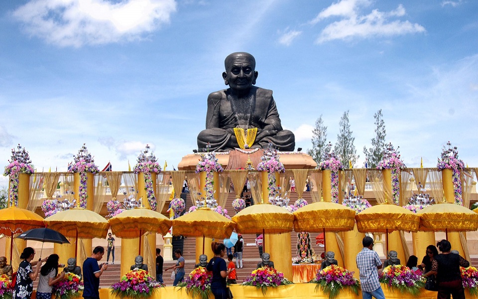 วันนี้ (10 เม.ย.) ที่วัดห้วยมงคล ต.ทับใต้ อ.หัวหิน จ.ประจวบคีรีขันธ์ นายสมชาย บำรุงทรัพย์ รองผู้ว่าราชการจังหวัด พระครูปภัสสรวรพินิจ หรืออาจารย์ไพโรจน์ เจ้าอาวาสวัดห้วยมงคล นางอรสา อาวุธคม ผู้อำนวยการการท่องเที่ยวแห่งประเทศไทย (ททท.) สำนักงานประจวบคีรีขันธ์ เป็นประธานกดปุ่มสรงน้ำหลวงพ่อทวดองค์ใหญ่ พระนามาภิไธยย่อ สก เนื่องในเทศกาลสงกรานต์ ท่ามกลางนักท่องเที่ยวทั้งชาวไทยและต่างชาติจำนวนมากเดินทางมากราบสักการะองค์หลวงพ่อทวดไม่ขาดสาย โดยประชาชนยังได้ร่วมสรงน้ำขอพรจากพระครูปภัสสรวรพินิจ