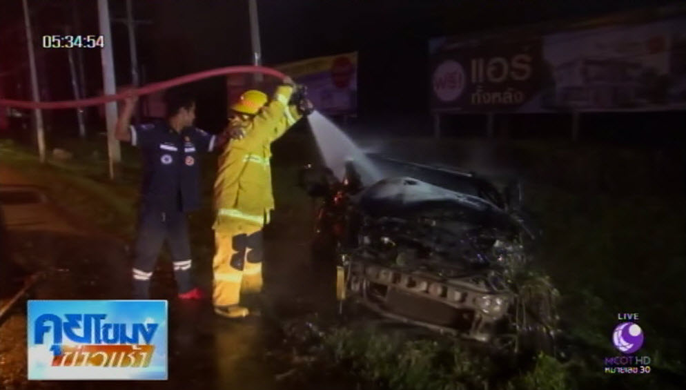 ปราจีนบุรี 11 เม.ย. – วันแรกของ 7 วันอันตรายช่วงสงกรานต์ รถเก๋งประสานงาไฟลุกท่วมที่ปราจีนบุรี คนขับเสียชีวิต บาดเจ็บอีก 2 ราย