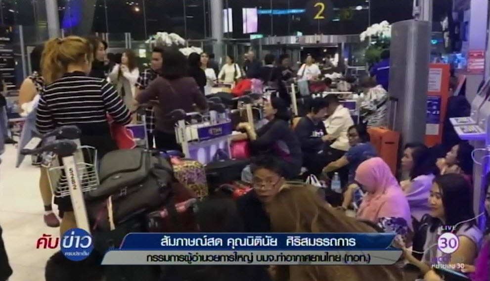 กทม. 11 เม.ย.-สนามบินสุวรรณภูมิวุ่น เมื่อกรุ๊ปทัวร์ไปเที่ยวญี่ปุ่นราว 1,500 คน ถูกลอยแพกลางสนามบิน เช็กชื่อผู้โดยสารก็ไม่พบว่ามีไปกับไฟลท์ไหนเลย พรุ่งนี้มีฮ่องกงอีก