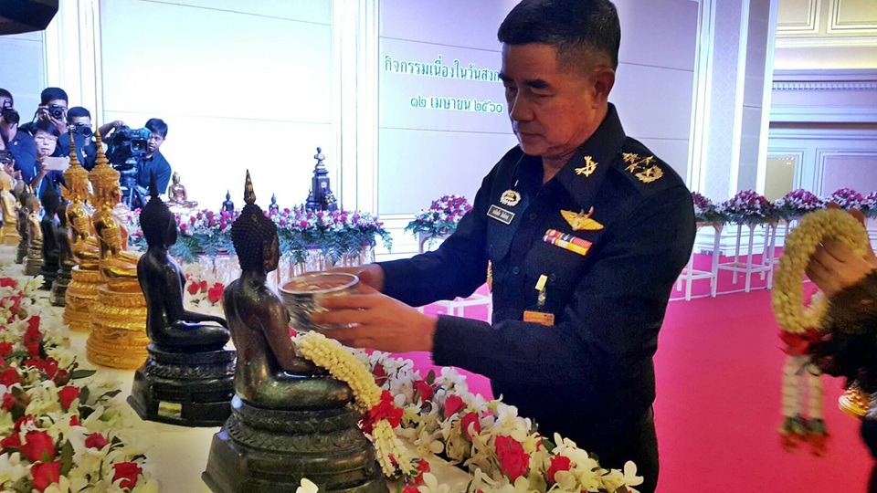 พล.อ.เฉลิมชัย สิทธิสาท ผู้บัญชาการทหารบก พร้อมด้วย นางเบญจวรรณ สิทธิสาท นายกสมาคมแม่บ้านกองทัพบก เป็นประธานการจัดกิจกรรมเนื่องในวันสงกรานต์ ประจำปี 2560 ณ ห้องรับรอง 221 กองบัญชาการกองทัพบก โดยมี ผู้บังคับบัญชาชั้นสูงของกองทัพบก และกำลังพลจาก 16 หน่วยงานภายในกองบัญชาการกองทัพบก รวมทั้งผู้แทนชุมชนรอบกองบัญชาการกองทัพบกเข้าร่วมงาน โดยกิจกรรมประกอบด้วยพิธีสงฆ์ ซึ่งกองทัพบกได้นิมนต์พระสงฆ์ จำนวน 10 รูป จากวัดหงส์รัตนาราม มาสวดเจริญพระพุทธมนต์และพิธีบังสุกุล อุทิศส่วนกุศลแก่กำลังพลที่เสียชีวิตจากการปฏิบัติหน้าที่ จากนั้นได้ร่วมกันสรงน้ำพระพุทธสิงห์ชัยมงคล พระพุทธรูปประจำกองทัพบก และพระพุทธรูปประจำหน่วยภายในกองบัญชาการกองทัพบก รวมถึงรดน้ำขอพรผู้บังคับบัญชา ตามลำดับ