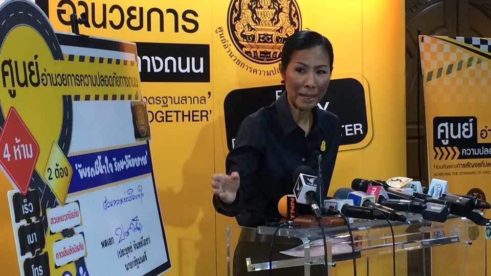 ด้านนางกอบกาญจน์ วัฒนวรางกูร รัฐมนตรีว่าการกระทรวงการท่องเที่ยวและกีฬา กล่าวว่า รัฐบาลต้องการปรับมุมมองการทำงาน เน้นให้ทุกชีวิตมีค่า เน้นให้เกิดการรักษาความปลอดภัย ทำอย่างไรไม่ให้รณรงค์เฉพาะช่วงเทศกาลสงกรานต์ ทุกคนต้องสวมหมวกนิรภัยและคาดเข็มขัดนิรภัย เพื่อลดอุบัติเหตุและสร้างวินัยจราจรให้เป็นวัฒนธรรมการใช้ถนนของคนไทย แม้สถิติการเกิดอุบัติเหตุ รวมถึงตัวเลขการเสียชีวิตจะลดน้อยลงกว่าปีที่ผ่านมา แต่รัฐบาลยังคงไม่พอใจ เนื่องจากเป้าหมายของรัฐบาล คือ ไม่ต้องการให้เกิดการสูญเสียหรือเกิดอุบัติเหตุกับประชาชน ซึ่งการออกกฎระเบียบที่เข้มงวดของรัฐบาล เพื่อต้องการให้ประชาชนมีความปลอดภัย และเห็นว่าต้องค่อย ๆ ปรับตัวตามกฎระเบียบจากประเทศไทยไปสู่ประเทศที่มีความปลอดภัยสูงหลายประเทศ โดยตลอดทั้งปีนี้จะมีการรณรงค์เรื่องการสร้างวินัยการจราจร เนื่องจากเป็นนโยบายของรัฐบาล อย่างไรก็ตาม ขณะนี้อยู่ระหว่างการศึกษาถึงสาเหตุของการเกิดเหตุและเสียชีวิตย้อนหลังไป 5 ปี ซึ่งพบว่าร้อยละ 80 พบว่ามีสาเหตุมาจากพฤติกรรมของผู้ขับขี่มีส่วนสำคัญในการเกิดอุบัติเหตุและสามารถป้องกันได้