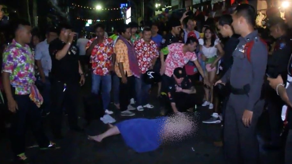 พัทยา 14 เม.ย.-นักท่องเที่ยวตกใจแทบช็อก เดินเที่ยวฉลองสงกรานต์กันอยู่ดีๆ จู่ๆร่างชายต่างชาติร่วงตกลงมากระแทกพื้นถนนกลางวอล์กกิ้งสตรีทพัทยา เสียชีวิตคาที่ในสภาพเปลือยกายล้อนจ้อน ตำรวจเร่งตรวจสอบเป็นการฆ่าตัวตายหรือฆาตกรรม