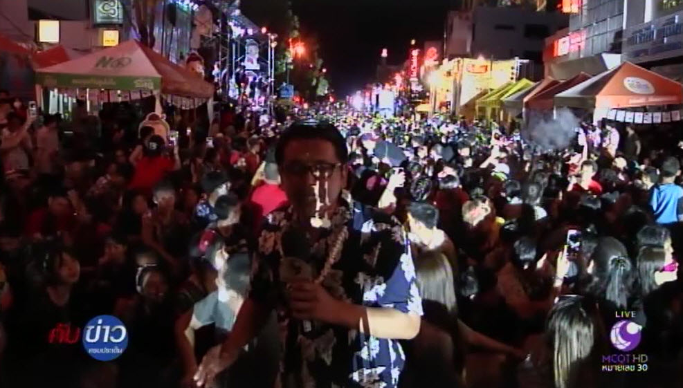 ขอนแก่น 14 เม.ย.-นักท่องเที่ยวต่างประทับใจในกิจกรรมคลื่นมนุษย์ไร้แอลกอฮอล์ บนถนนข้าวเหนียว จ.ขอนแก่น วันที่ 2 ซึ่งเทศบาลนครขอนแก่น เจ้าภาพ หวังทำลายสถิติโลกที่ตัวเองเคยทำไว้เมื่อปีที่แล้วกว่า 61,000 คน.-สำนักข่าวไทย