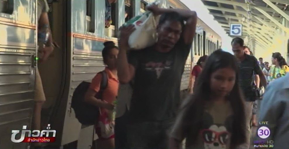 ส่วนสถานีรถไฟหัวลำโพง ประชาชนเริ่มทยอยโดยสารรถไฟเพื่อกลับมาเตรียมทำงานแล้ว โดยส่วนใหญ่เป็นขบวนรถไฟจากสายอีสาน เช่น หนองคาย อุบลราชธานี ศรีสะเกษ ขณะที่สายเหนือ จากอุตรดิตถ์ ซึ่งการรถไฟแห่งประเทศไทย ได้จัดขบวนรถพิเศษ ให้บริการฟรี เพิ่ม ระหว่างวันที่ 15-18 เมษายนนี้ รวม 29 ขบวน นอกเหนือจากขบวนปกติในทุกเส้นทางรวม 264 ขบวน สามารถรองรับผู้โดยสารได้มากกว่า วันละ 1.2 แสนคน