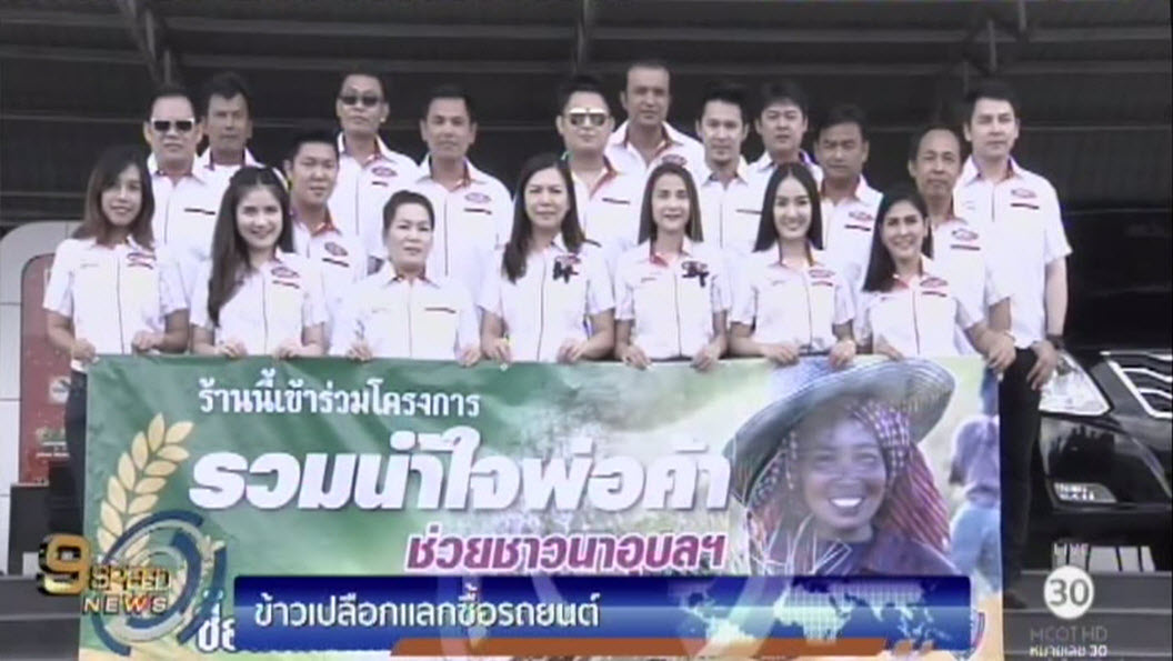 ผู้ค้ารถยนต์มือสอง จ.อุบลราชธานี 33 แห่ง จับมือจัดแคมเปญช่วยเหลือชาวนาตามโครงการ “รวมน้ำในพ่อค้าสู่ชาวนาอุบลฯ” โดยเปิดให้ชาวนานำข้าวเปลือกมาแลกซื้อรถ หรือใช้เป็นเงินดาวน์ หรือผ่อนค่างวดรถยนต์ได้ โดยใช้เกณฑ์รับซื้อข้าวเปลือกราคาเดียวกับหน้าโรงสี และจะบวกเพิ่มให้อีกกิโลกรัมละ 3 บาท หรือสามารถนำหลักฐานการขึ้นทะเบียนชาวนามาแสดง เพื่อขอรับส่วนลดพิเศษได้อีกด้วย เริ่มตั้งแต่ตอนนี้ถึงเดือนมกราคมปีหน้า