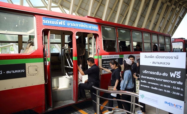 นางสาวจินตนา พงษ์ภักดี ผู้อำนวยการ สำนักงานฝ่ายสื่อสารองค์กร บริษัท อิมแพ็ค เอ็กซิบิชั่น แมเนจเม้นท์ จำกัด ผู้บริหารศูนย์แสดงสินค้าและการประชุม อิมแพ็ค เมืองทองธานี เปิดเผยว่า จากที่อิมแพ็คร่วมกับองค์การขนส่งมวลชนกรุงเทพ (ขสมก.) จัดรถบริการรับ-ส่ง ฟรี เส้นทางเมืองทองธานี-สนามหลวง สำหรับประชาชนที่ต้องการเดินทางร่วมถวายความอาลัยพระบรมศพพระบาทสมเด็จพระปรมินทรมหาภูมิพลอดุลยเดช ณ พระที่นั่งดุสิตมหาปราสาท ในพระบรมมหาราชวัง ช่วงเดือนตุลาคมที่ผ่านมามีประชาชนกว่า 20,000 คนมาใช้บริการ จึงได้ขยายการให้บริการต่อเนื่องไปจนถึงวันที่ 30 พฤศจิกายน 2559 พร้อมแนะประชาชนที่เตรียมเดินทางเป็นกลุ่มคณะ ทั้งจากองค์กร หน่วยงาน สถาบัน ในพื้นที่ใกล้เคียงและจากต่างจังหวัด สามารถแจ้งความประสงค์สำรองบริการได้ล่วงหน้าที่หมายเลขโทรศัพท์ 096-8973636 .-สำนักข่าวไทย