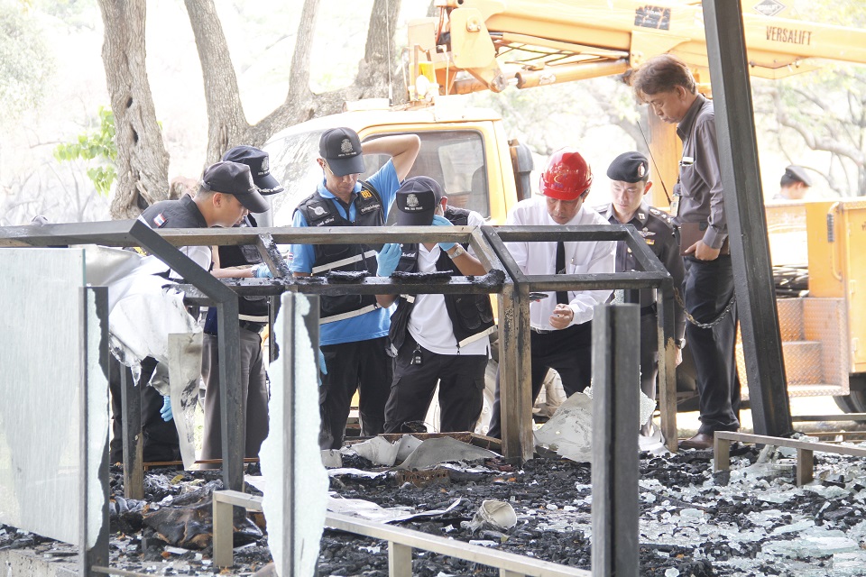 “ช่วงนี้ขอเวลาในการทำงานอย่างละเอียด เพื่อแสวงหาหลักฐานในที่เกิดเหตุให้มากที่สุด และยังกันพื้นที่บริเวณเพลิงไหม้เป็นเขตจำเพาะห้ามเข้า เพื่อป้องกันบุคคลไม่เกี่ยวข้องเข้ามากระทบต่อหลักฐาน”.-สำนักข่าวไทย