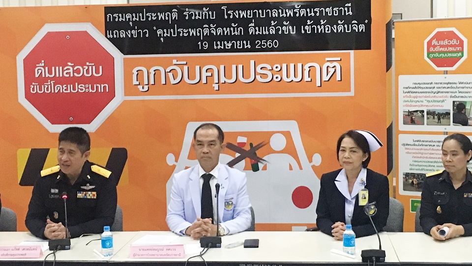 พ.ต.อ.ณรัชต์ เศวตนันท์ อธิบดีกรมคุมประพฤติ รว่มกับ นพ.สมบูรณ์ ทศบวร ผู้อำนวยการโรงพยาบาลนพรัตน์ราชธานี ร่วมแถลงข่าว “คุมประพฤติจัดหนัก ดื่มแล้วขับ เข้าห้องดับจิต” ในช่วงเทศกาลสงกรานต์ที่ผ่านมา