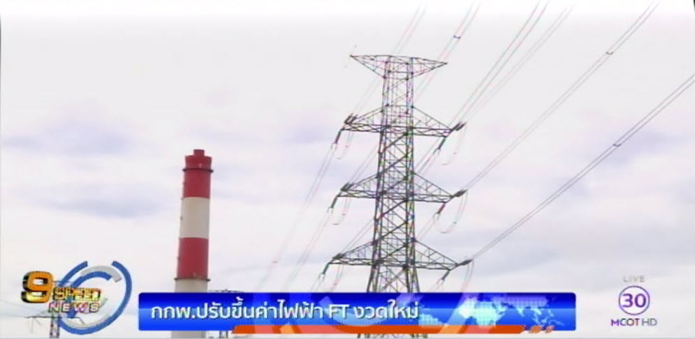 กกพ.มีมติปรับขึ้นค่าไฟฟ้า FT งวดใหม่ 12.52 สต./หน่วย ส่งผลค่าไฟฟ้าเอฟทีงวดใหม่เดือน พ.ค.-ส.ค.ยังติดลบ 24.77 สต. ค่าไฟเฉลี่ยทุกประเภทอยู่ที่ 3.5079 บาท/หน่วย เหตุผลจากค่าเชื้อเพลิงขยับขึ้น โดยเฉพาะราคาก๊าซธรรมชาติขยับขึ้นตามราคาน้ำมัน.-สำนักข่าวไทย