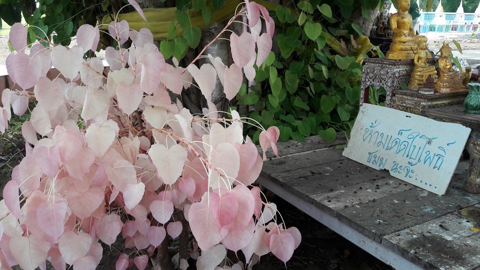สำหรับต้นโพธิ์ที่มีใบสีขาวและชมพูนั้น ก่อนหน้านี้พบที่จังหวัดกาญจนบุรี ต้นโพธิ์ของวัดศรีอุปลาราม หรือวัดหนองบัว อำเภอเมือง มีใบสีขาวชมพูเช่นเดียวกันและเป็นช่วงเทศกาลสงกรานต์ ประชาชนที่มาทำบุญให้ความสนใจอย่างมาก.-สำนักข่าวไทย