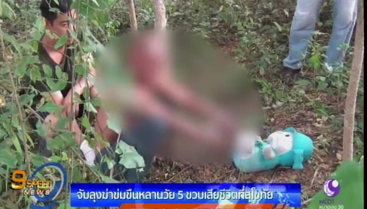 สุโขทัย 22 เม.ย.-ตำรวจสภ.เมืองสุโขทัย ควบคุมตัวนายเอกพล หรือตั้ม ชาวตำบลธานี อำเภอเมืองสุโขทัย ไปทำแผนประกอบคำรับสารภาพ หลังล่อลวงหลานสาวแท้ๆวัย 5 ขวบไปกระทำชำเรา ก่อนทำร้ายร่างกายและบีบคอจนเสียชีวิตบริเวณป่าละเมาะห่างจากบ้านพัก เพียง 50 เมตร