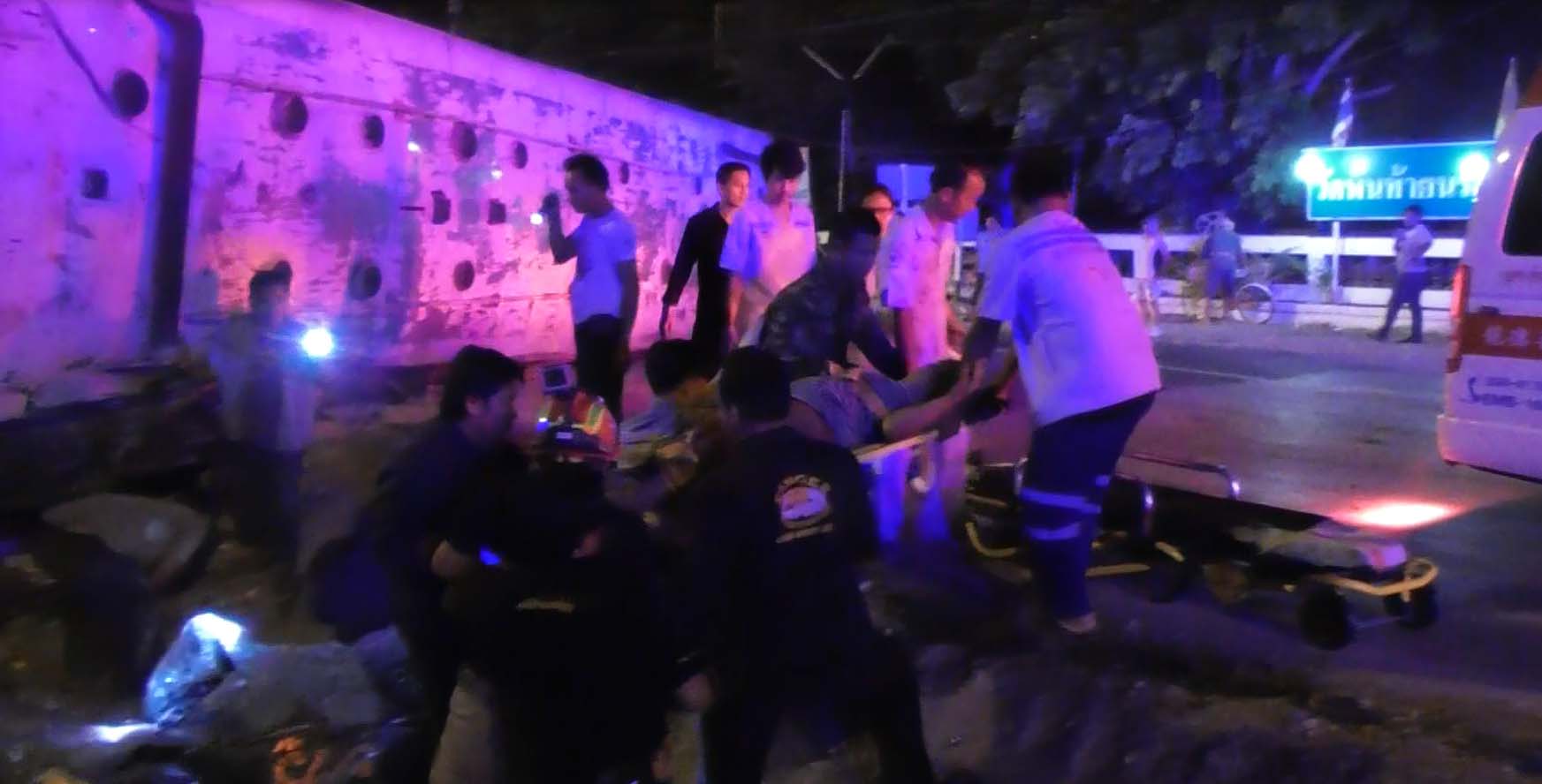 สมุทรสาคร 23 เม.ย.- กู้ภัยสมุทรสาครเร่งช่วยแรงงานเมียนมาร์ 19 ราย บาดเจ็บจากอุบัติเหตุรถทัวร์เช่าเหมาพลิกตกร่อง ถ.พระราม 2 หน้าวัดพันท้ายนรสิงห์