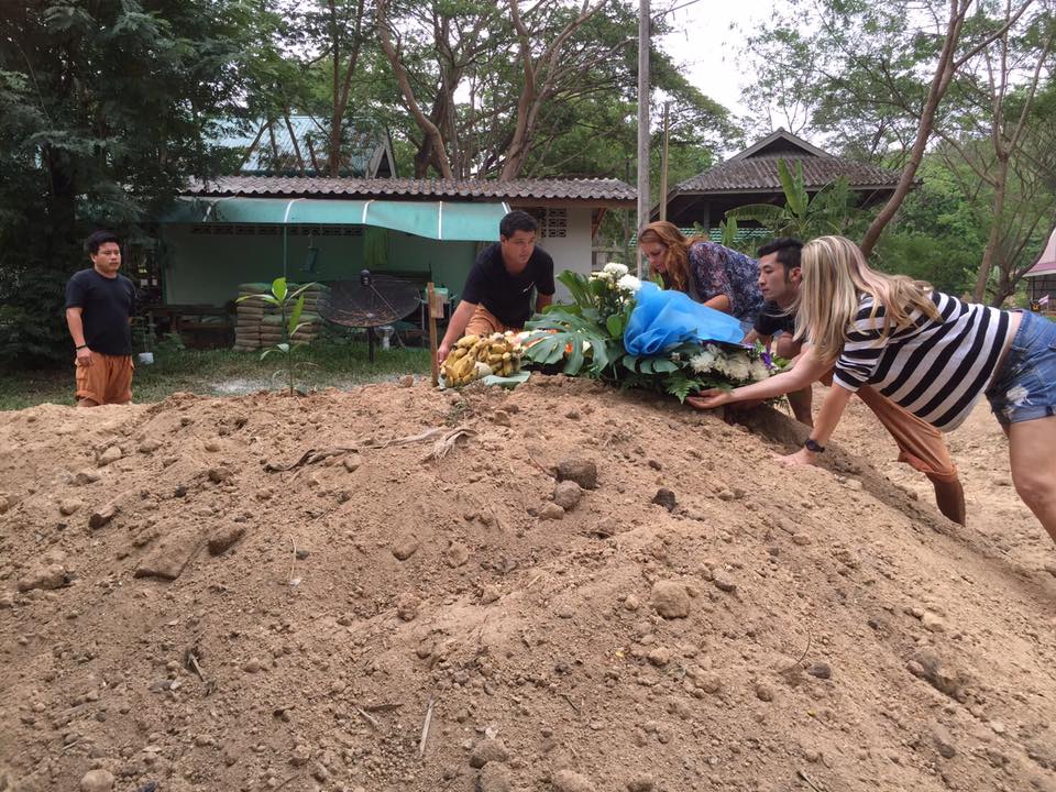 ลำปาง 23 เม.ย.- นักท่องเที่ยวเสียใจรู้ข่าว “พลายดานเต้” ช้างแคระล้มกะทันหัน นำกล้วย-พวงหรีดวางหลุมฝังกลบ รพ.ของมูลนิธิเพื่อนช้าง ด้าน “โซไรดา” คาด 15 วัน รู้ผลตรวจหาสาเหตุ