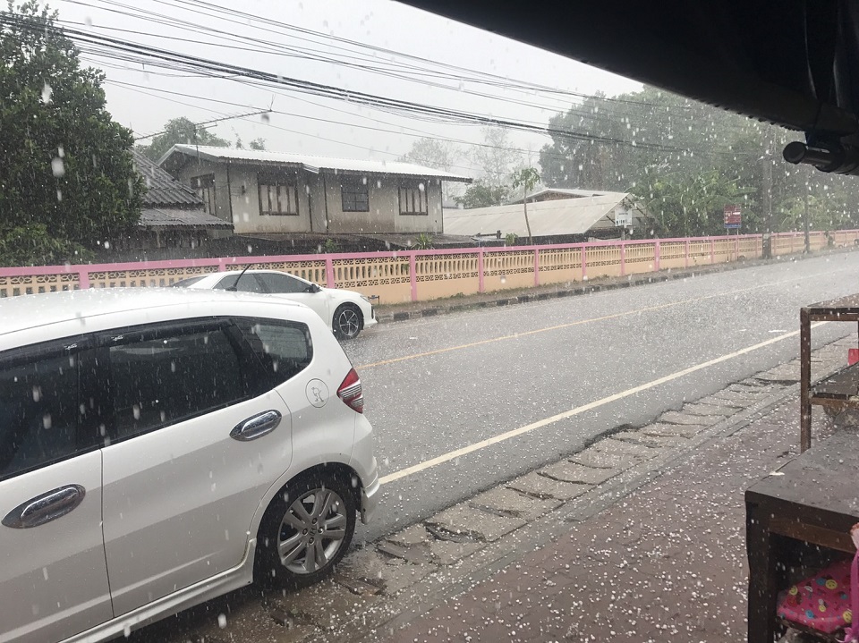 เมื่อเวลา 15.30 น. (23 เม.ย.) เกิดฝนตกหนักโดยทั่วไปในจังหวัดเลย โดยเฉพาะอำเภอเชียงคานลูกเห็บกระหน่ำกว่า 30 นาที ทำให้หลายพื้นที่ขาวโพลน รวมถึงตามท้องถนน ด้านนายบรรพต ยาพอง นายอำเภอเชียงคาน กำชับให้หน่วยงานป้องกันและบรรเทาสาธารณภัยอำเภอเร่งสำรวจความเสียหาย พร้อมประสานกำนันผู้ใหญ่บ้านตรวจสอบบ้านเรือนแต่ละตำบล เพื่อรวบรวมข้อมูลรายงานจังหวัดในการช่วยเหลือซ่อมแซม.-สำนักข่าวไทย