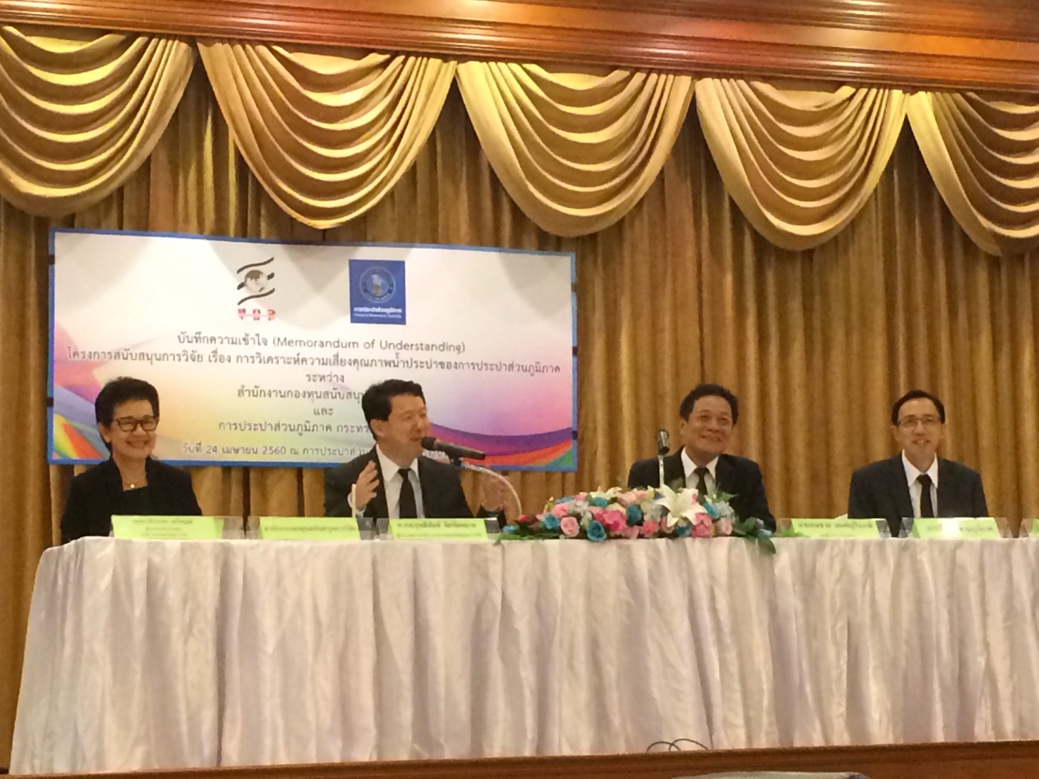 นายสมชาย มนต์บุรีนนท์ รองผู้ว่าการประปาส่วนภูมิภาค (กปภ.) เปิดเผยว่า กปภ. และ สำนักงานกองทุนสนับสนุนการวิจัย (สกว.) ร่วมผลักดันดำเนินโครงการสนับสนุนการวิจัย เรื่อง การวิเคราะห์ความเสี่ยงคุณภาพน้ำประปาของ กปภ. เพื่อเสริมสร้างองค์ความรู้และเทคนิคการประเมินความเสี่ยง ตลอดจนการจัดการความเสี่ยงเพื่อพัฒนาคุณภาพความปลอดภัยของน้ำประปา โดย สกว. จะใช้การวิจัยเป็นกลไกสร้างฐานความรู้ พร้อมสนับสนุนด้านวิชาการและระบบการบริหารจัดการในการประเมินความเสี่ยง ควบคู่ไปกับการแลกเปลี่ยนทางวิชาการในด้านการวิจัยและพัฒนาการวิเคราะห์ความเสี่ยงร่วมกัน เพื่อฝึกฝนบุคลากรของ กปภ. ให้สามารถประเมินความเสี่ยงคุณภาพน้ำประปาได้อย่างมีประสิทธิภาพมากขึ้น