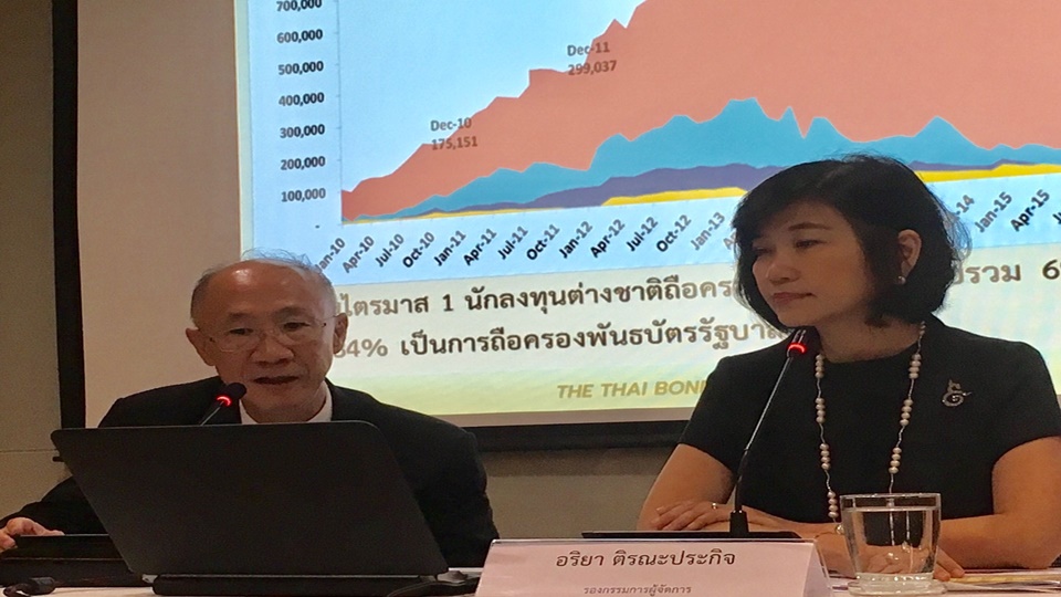 นางสาวอริยา ติรณะประกิจ รองกรรมการผู้จัดการสมาคมตลาดตราสารหนี้ไทย กล่าวว่า ภาพรวมเงินลงทุนจากต่างประเทศไตรมาส 1/2560 มีกระแสเงินทุนจากต่างชาติไหลเข้าสุทธิรวม 69,037 ล้านบาท โดยร้อยละ 83.4 เป็นการไหลเข้าสุทธิในตราสารหนี้ระยะยาว และร้อยละ 16.5 เป็นการซื้อสุทธิในตราสารหนี้ระยะสั้น ทำให้มูลค่าเงินลงทุนในตลาดตรสารหนี้ของนักลงทุนต่างชาติสิ้นไตรมาส 1 เท่ากับ 696,104 ล้านบาท หรือเท่ากับร้อยละ 6.2 ของมูลค่าตลาดตราสารหนี้ไทย