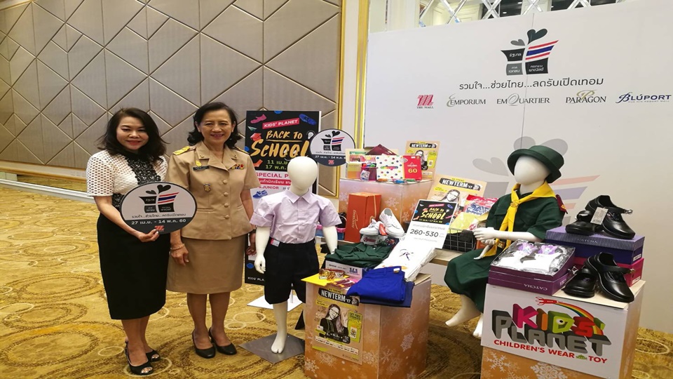 สำหรับการจัดงานลดราคาสินค้าครั้งนี้จัดขึ้นภายใต้ชื่อ “รวมใจ..ช่วยไทย..ลดรับเปิดเทอม” ระหว่างวันที่ 27 เมษายน – 14 พฤษภาคม 2560 รวมระยะเวลา 18 วัน โดยได้รับความร่วมมือจากผู้ผลิตผู้จำหน่ายชุดนักเรียน 4 ราย ได้แก่ ร้านศึกษาภัณฑ์ของกระทรวงศึกษาธิการ ร้านน้อมจิตต์ ห้างตราสมอ และร้านสมใจนึก รวมทั้งร้านจำหน่ายเครื่องเขียนและอุปกรณ์การเรียน ห้างค้าปลีกค้าส่งสมัยใหม่ ห้างสรรพสินค้า และร้านสะดวกซื้อ 14 ราย ได้แก่ เซ็นทรัล โรบินสัน แฟมิลี่มาร์ท ท็อปส์ เทสโก้โลตัส บิ๊กซี แม็คโคร เดอะมอลล์ เซเว่นอีเลฟเว่น ฟู้ดแลนด์ 108shop ลอว์สัน แม็กซ์แวลู และเจซีมาร์ท