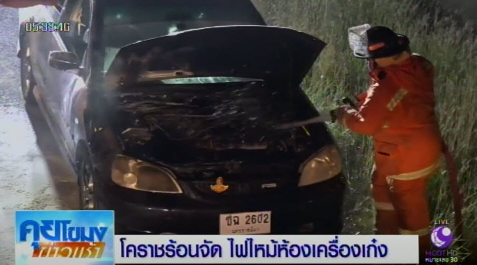 โคราช 27 เม.ย.-ไฟไหม้ห้องเครื่องรถเก๋ง บริเวณถนนเฉลิมพระเกียรติ ต.หนองกระทุ่ม อ.เมือง จ.นครราชสีมา 6 ชีวิตในรถหนีรอดหวุดหวิด สาเหตุคาดเครื่องยนต์ขัดข้องจากสภาพอากาศร้อนจัด