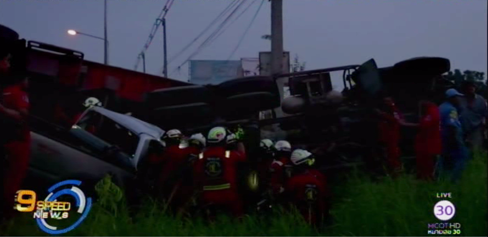 ชลบุรี 28 เม.ย. – 2 พ่อลูกขับรถกระบะติดเครื่องเสียงหลุดโค้งชนประสานงากับรถพ่วงบรรทุกดิน 18 ล้อ เสียชีวิต บนถนนบ้านไร่-หนองกาน้ำ อ.พานทอง จ.ชลบุรี โดยรถพ่วงพลิกตะแคงในร่องน้ำข้างถนน ใกล้กับรถกระบะที่สภาพด้านหน้าพังยับเยิน ภายในรถกระบะมีผู้เสียชีวิต 2 ราย ชื่อนายอัฐกรณ์ สูงเนินเขต อายุ 15 ปี คนขับ และนายตระกูลไทย สูงเนินเขต อายุ 40 ปี ทั้งสองเป็นพ่อลูกกัน เจ้าหน้าที่กู้ภัยใช้เวลาประมาณ 1 ชั่วโมง จึงงัดร่างออกมาได้