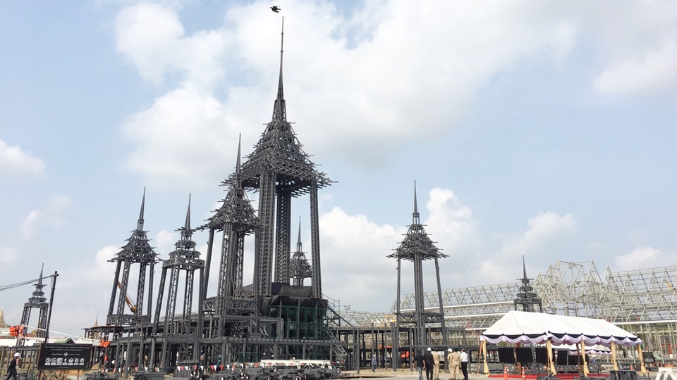 โดยส่วนของโครงสร้างพระเมรุมาศ ซึ่งเป็นอาคารสำคัญโครงสร้างแล้วเสร็จร้อยละ90 ดำเนินการติดตั้งชั้นเชิงกลอน และเรือนยอดบุษบกทั้ง9 องค์เรียบร้อยแล้ว และกำลังดำเนินการก่อสร้างชาลาทั้งสามด้าน เพื่อเตรียมติดตั้งบันไดและปูพื้นไม้