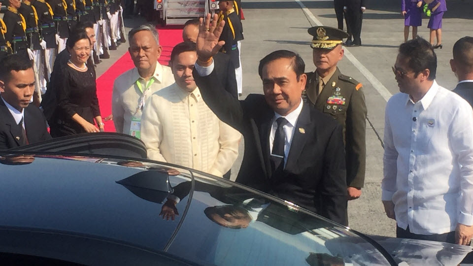 “ชาตรี แสงเพ็ง” ผู้สื่อข่าวสำนักข่าวไทย ที่ติดตามภารกิจของ พล.อ.ประยุทธ์ จันทร์โอชา นายกรัฐมนตรี เข้าร่วมประชุมสุดยอดอาเซียน ครั้งที่ 30 และการประชุมอื่นๆ ที่เกี่ยวข้อง ระหว่างวันที่ 28-30 เม.ย.นี้ รายงานว่า นายกรัฐมนตรีและคณะ เดินทางถึงท่าอากาศยานนานาชาตินินอย อาคีโน แล้ว เมื่อเวลา 15.00 น. วันนี้ (28 เม.ย.) ตามเวลาท้องถิ่น ซึ่งเร็วกว่าประเทศไทย 1 ชั่วโมง โดยมีรัฐมนตรีกระทรวงคมนาคมของฟิลิปปินส์ให้การต้อนรับ และเชิญนายกรัฐมตรีและภริยา เดินผ่านแถวทหารเกียรติยศ ก่อนเดินทางไปยังโรงแรมดุสิตธานี มะนิลา ซึ่งเป็นโรงแรมที่พัก