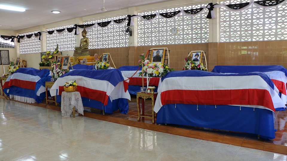 เมื่อเวลา 11.00 น. (28 เม.ย.) พล.ท.ปิยวัฒน์ นาควานิช แม่ทัพภาคที่ 4 ในฐานะผู้อำนวยการกองอำนวยรักษาความมั่นคงภายใน (กอ.รมน.) ภาค 4 เป็นประธานในพิธีรดน้ำศพ 6 เจ้าหน้าที่ทหารสังกัดกองร้อยทหารพรานที่ 1114 กรมทหารพรานที่ 11 ที่วัดบางนรา จ.นราธิวาส ได้แก่ ส.อ.พรชัย สงเคราะห์ อายุ 33 ปี อส.ทพ.วีรวิทย์ ธรรมนาม อายุ 29 ปี อส.ทพ.ธารา กองเกตุ อายุ 30 ปี อส.ทพ.ธนะพงษ์ ทวีประยูร อายุ 26 ปี อส.ทพ. มาโนช ไมตรีสัมพันธ์ อายุ 31 ปี และ อส.ทพ.ยุทธยงค์ มุงธิราช อายุ 30 ปี
