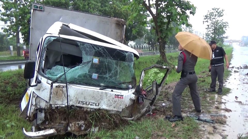 จากการสอบสวนทราบว่า นายสมศรีได้ขับรถบรรทุกหกล้อคันดังกล่าว ซึ่งเป็นของ หจก.น้ำดื่มน้ำแข็งลานทอง มุ่งหน้าเข้าตัวจังหวัดอุบลราชธานี เพื่อนำน้ำดื่มและน้ำแข็งไปส่งให้ลูกค้าในตอนเช้า ท่ามกลางฝนที่ตกลงมาจากอิทธิพลของพายุฤดูร้อนตั้งแต่กลางดึกที่ผ่านมา ระหว่างขับรถเข้าโค้ง รถเกิดเสียหลักพุ่งชนแผงกั้นริมทาง ก่อนพลิกคว่ำตกลงไปในร่องกลางถนน จนมีผู้ได้รับบาดเจ็บดังกล่าว.-สำนักข่าวไทย