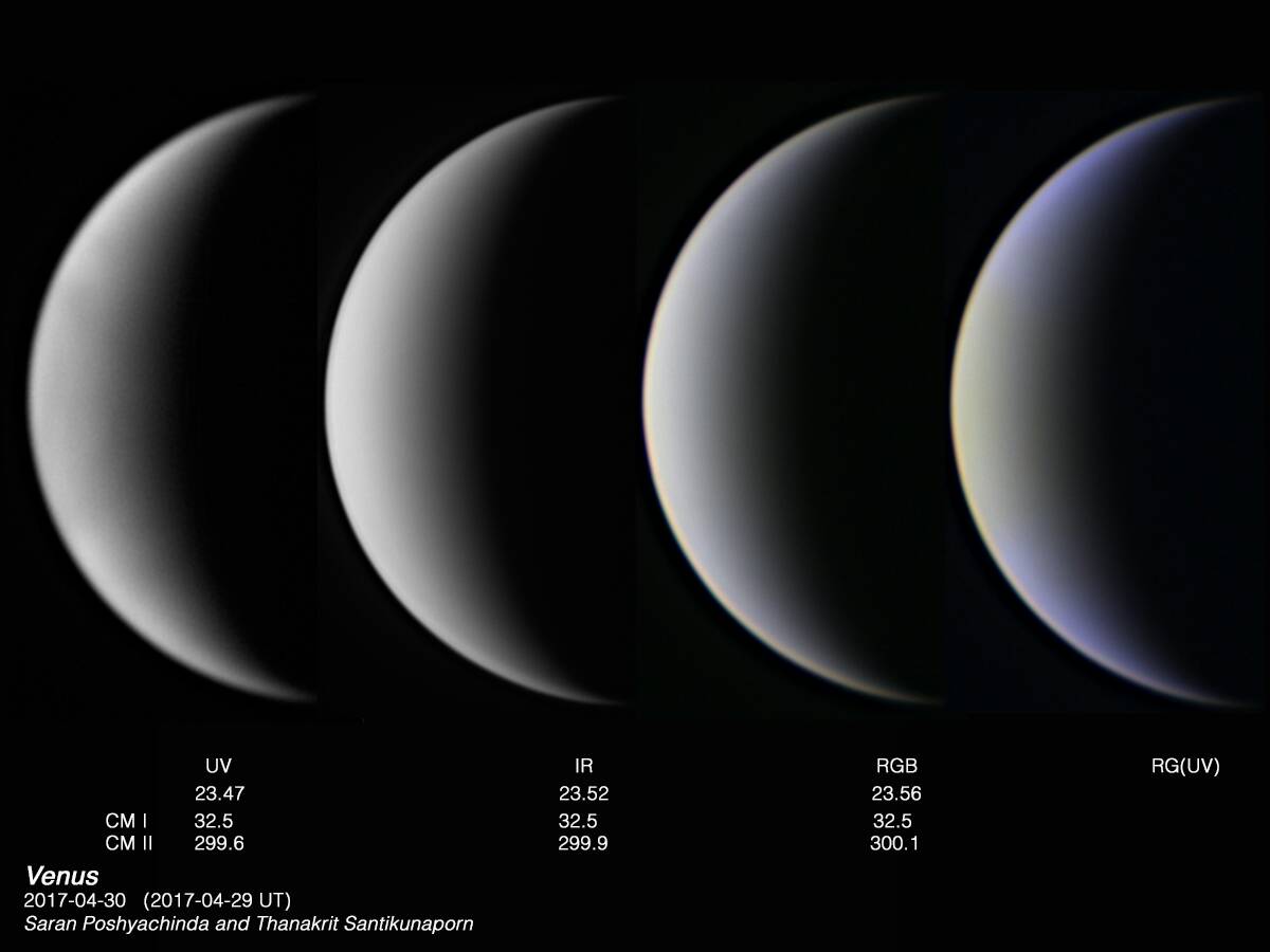 กลุ่มงานประชาสัมพันธ์ สถาบันวิจัยดาราศาสตร์แห่งชาติ (องค์การมหาชน) (สดร.) กระทรวงวิทยาศาสตร์และเทคโนโลยี เปิดภาพดาวศุกร์ช่วงรุ่งเช้าวันที่ 30 เมษายน จากกล้องโทรทรรศน์บนยอดดอยอินทนนท์ จ.เชียงใหม่ ซึ่งเป็นช่วงดาวศุกร์สว่างที่สุดอีกครั้ง และเป็นครั้งสุดท้ายในรอบปี 2560 โดยเวลาดังกล่าวสามารถมองเห็นดาวศุกร์ได้ด้วยตาเปล่าได้อย่างชัดเจนทางทิศตะวันออก หากมองผ่านกล้องโทรทรรศน์จะเห็นเป็นเสี้ยว พร้อมกันนี้ยังได้แสดงภาพชุดดาวศุกร์ยามเช้าก่อนดวงอาทิตย์ขึ้น ตั้งแต่เดือนมีนาคมถึงเมษายน 2560 โดยจะเห็นได้ว่าดาวศุกร์ปรากฏเป็นเสี้ยวหนาขึ้นเรื่อย ๆ และมีขนาดปรากฏเล็กลงเรื่อยๆ จนถึงวันที่ 30 เมษายน นักวิชาการดาราศาสตร์ สดร. ย้ำว่าปรากฏการณ์นี้เป็นเรื่องทางดาราศาสตร์ปกติไม่เกี่ยวข้องใด ๆ กับดวงบ้านเมือง