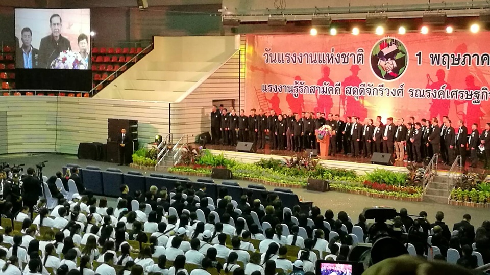 อาคารกีฬาเวสน์ 2 1 พ.ค.- นายกรัฐมนตรี เปิดงานวันแรงงานแห่งชาติปี 60 ย้ำยกระดับคุณภาพ เพิ่มรายได้แรงงานไทย ก้าวสู่ไทยแลนด์ 4.0 ขออย่าเชื่อคำบิดเบือนในโซเชียล ยืนยันไม่คิดเลิกโครงการ 30 บาท