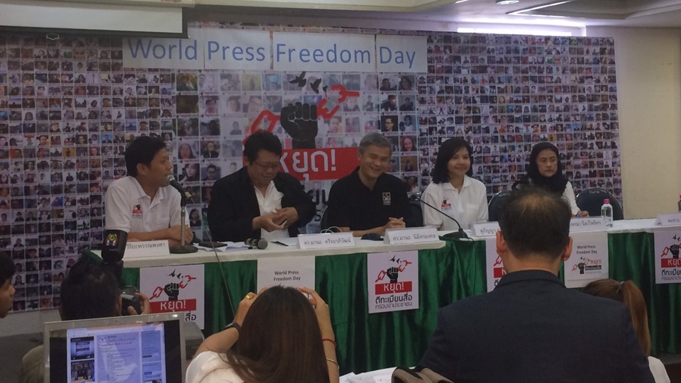 สมาคมนักข่าวฯ 3 พ.ค.- องค์กรวิชาชีพสื่อมวลชน 30 องค์กรออกเเถลงการณ์ 5 ข้อในวันเสรีภาพสื่อมวลชนโลก ให้รัฐยับยั้งพ.ร.บ.คุมสื่อ ด้านนักวิชาการมองกฎหมายเเก้ปัญหาไม่ตรงจุด จัดเสรีภาพ ไม่เเก้ปัญหาจริยธรรม