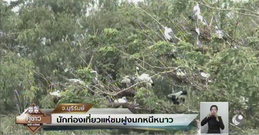บุรีรัมย์ 6 พ.ย. – นักท่องเที่ยวเดินทางมาเที่ยวชมนกหนีหนาวและนกปากห่างนับหมื่นตัวที่อพยพมาทำรังวางไข่ในพื้นที่ชุ่มน้ำ เขตห้ามล่าสัตว์ป่าอ่างเก็บน้ำสนามบินประโคนชัย จ.บุรีรัมย์ ท่ามกลางบรรยากาศเย็นสบาย หลังอุณหภูมิลดลงต่อเนื่อง