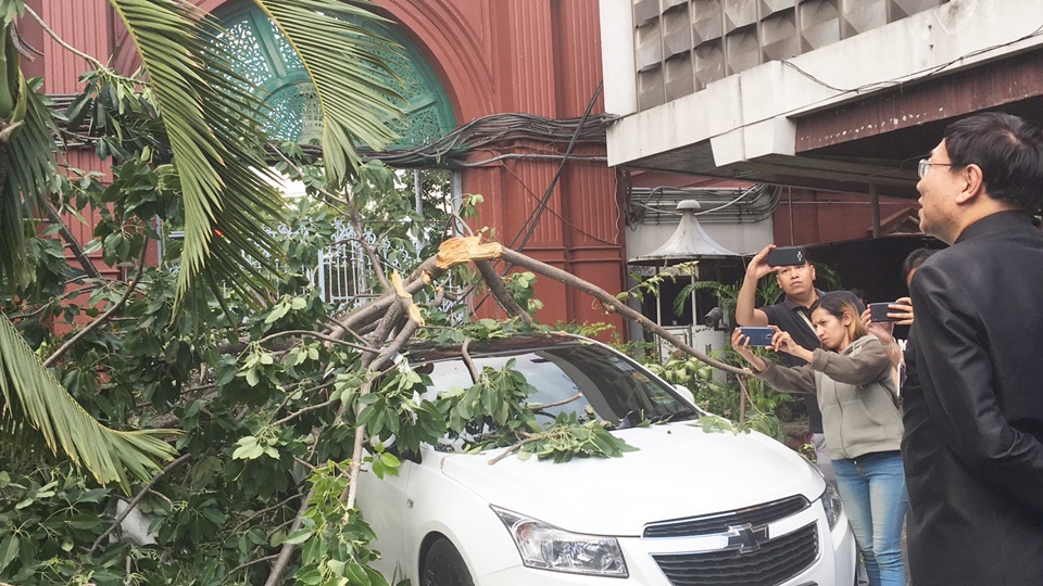 รัฐสภา 4 พ.ค. – ต้นงิ้วป่าเก่าแก่อายุกว่า 100 ปี หักโค่นทับศาลาและรถยนต์ในรัฐสภา ประธาน สนช.เชื่อไม่มีนัย แค่ปรากฎการณ์ธรรมชาติ
