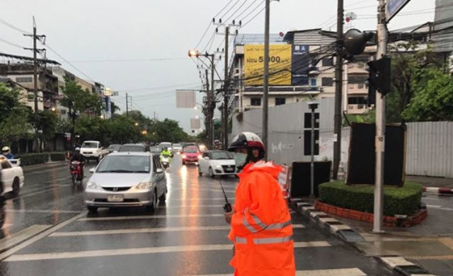 กทม. 5 พ.ค.-สวพ.FM91 รายงานจราจรเช้าวันศุกร์ ฝนตกถนนลื่น จราจรบริเวณแยกบุคคโล และสะพานกรุงเทพ ปริมาณรถมาก