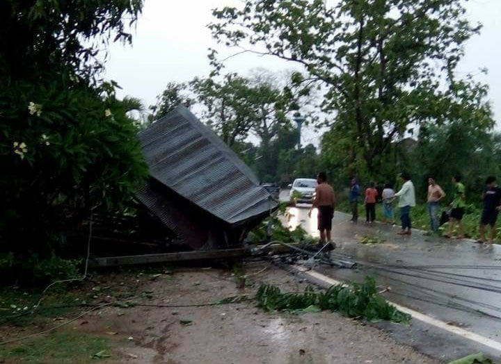 ที่ จ.สุโขทัย ลมฝนกระโชกแรง มีต้นไม้หักโค่นเช่นกัน และไฟฟ้าดับหลายพื้นที่เมื่อคืนนี้ โดยต้นโพธิ์อายุกว่า 100 ปี ขนาด 4 คนโอบ โค่นทับหลังคาวิหารหลวงพ่อทองคำ วัดสวรรคาราม ต.เมืองสวรรคโลก อ.สวรรคโลก ได้รับความเสียหาย เจ้าหน้าที่และพระสงฆ์ได้นำแผงเหล็กมากั้นไว้รอบบริเวณ เพื่อไม่ให้ประชาชนเข้าใกล้ เพราะเกรงเศษกระเบื้องหลังคาจะหล่นมาได้อีก พร้อมกับเร่งรื้อถอนต้นโพธิ์ออกจะวิหาร นอกจากนี้ แรงลมยังพัดรถเข็นขายของของชาวบ้านที่จอดอยู่ริมทางข้างวัดล้มพัง