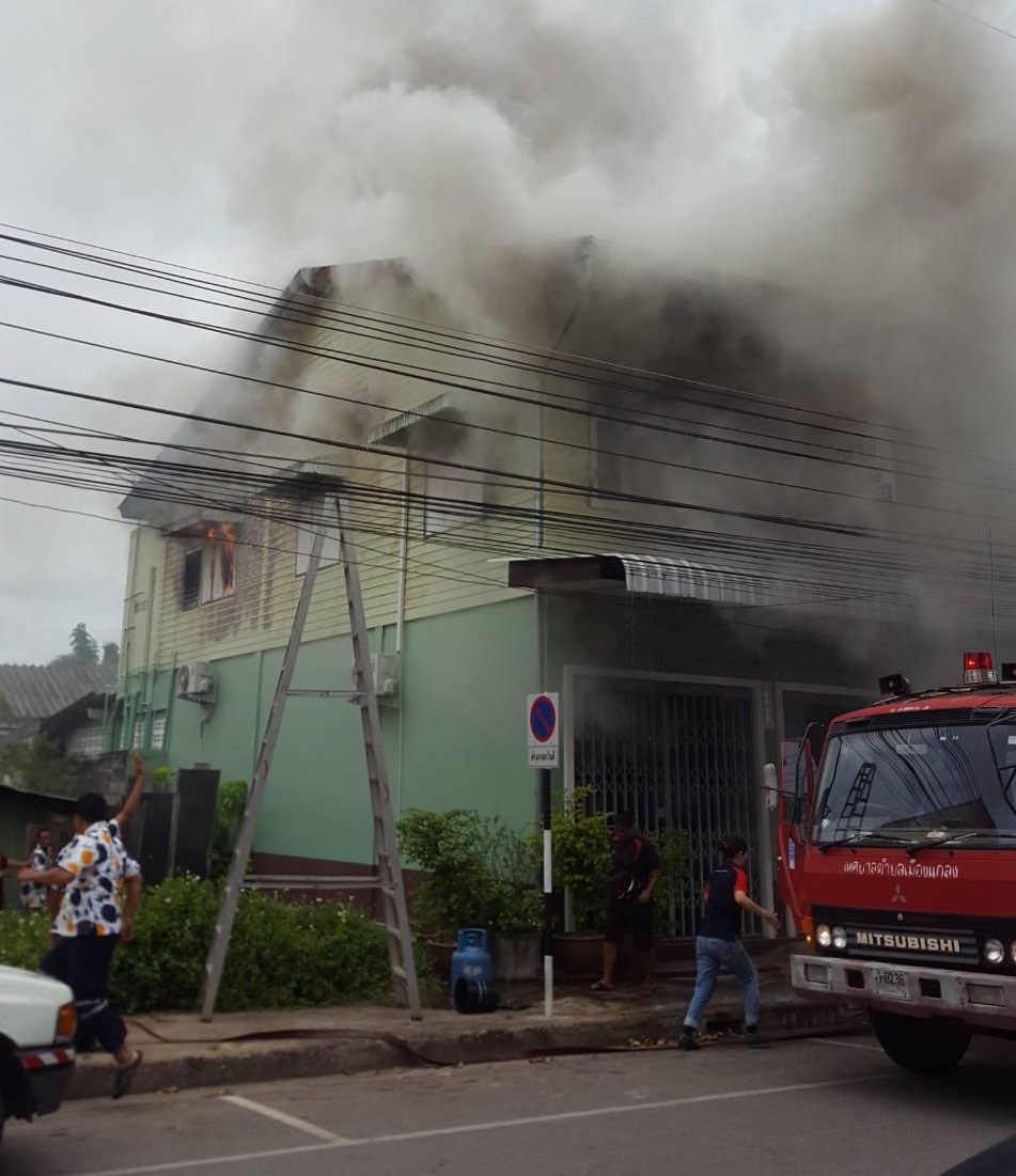 เมื่อเวลา 12.00 น. วันนี้ (5 พ.ค.) ร.ต.อ.สมหมาย วรรณทอง พนักงานสอบสวน สภ.แกลง จ.ระยอง ประสานหน่วยดับเพลิงเทศบาลตำบลเมืองแกลง นำรถน้ำ 6 คัน เข้าระงับเหตุเพลิงไหม้ร้านขายขนมเปี๊ยะชาววัง ย่านถนนเทศบาล 1 เป็นบ้าน 2 ชั้น ครึ่งตึกครึ่งไม้ ขณะเดียวกัน นายวิทยา ชพานนท์ นายอำเภอแกลง พ.ต.ท.มานพ ประสาท รอง ผกก.สส. และนายสันติชัย กังสวานิช นายกเทศมนตรีเทศบาลตำบลเมืองแกลง ลงพื้นที่ช่วยอำนวยการดับเพลิง ท่ามกลางกลุ่มควันดำหนาทึบลอยออกมาจากชั้น 2 พร้อมเสียงตะโกนขอความช่วยเหลือ “ช่วยหนูด้วย หนูหายไม่ออก ใครก็ได้ช่วยหนูที” ชาวบ้านและเจ้าหน้าที่จึงช่วยกันทุบฝาบ้านและนำตัวผู้ติดอยู่ชั้นบนออกมาได้อย่างปลอดภัยทั้ง 2 คน เป็นหญิงพี่น้องกัน อายุ 15 ปี และ 11 ปี ส่วนชั้นล่างเป็นหญิงอายุ 76 ปี ถูกประคองออกมาได้ก่อนหน้านี้ โดยเจ้าหน้าที่ใช้เวลาฉีดน้ำนานกว่าครึ่งชั่วโมง จึงควบคุมเพลิงไว้ได้อย่างสงบ พบว่าชั้นบนเสียหายทั้งหมดและบางส่วนของชั้นล่าง