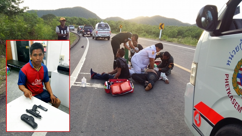 ประจวบคีรีขันธ์ 6 พ.ค.-ตำรวจหัวหินคุมตัวหนุ่มเจ้าของไร่เลือดร้อนไปทำแผนประกอบคำรับสารภาพ หลังก่อเหตุไล่ยิง 2 คนงานพม่า ดับ 1 บาดเจ็บ 1 ที่เมาแล้วพยายามเข้ามาทำร้าย
