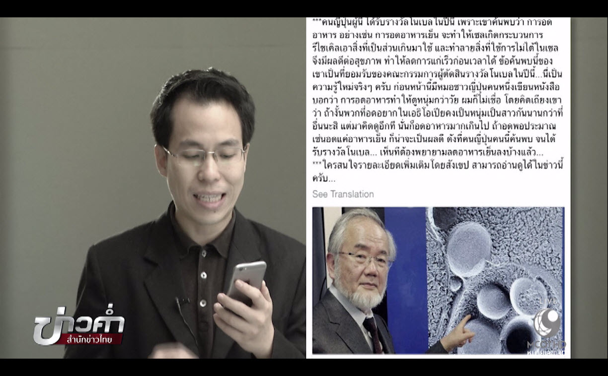 กรุงเทพฯ 5 พ.ย.-บนสังคมออนไลน์มีการแชร์ว่า รางวัลโนเบลในปีนี้ เป็นการค้นพบเรื่องการอดอาหาร ที่จะทำให้ร่างกายมีสุขภาพที่ดีขึ้นเรื่องนี้จริงหรือไม่ ติดตามจากศูนย์ชัวร์ก่อนแชร์.-สำนักข่าวไทย